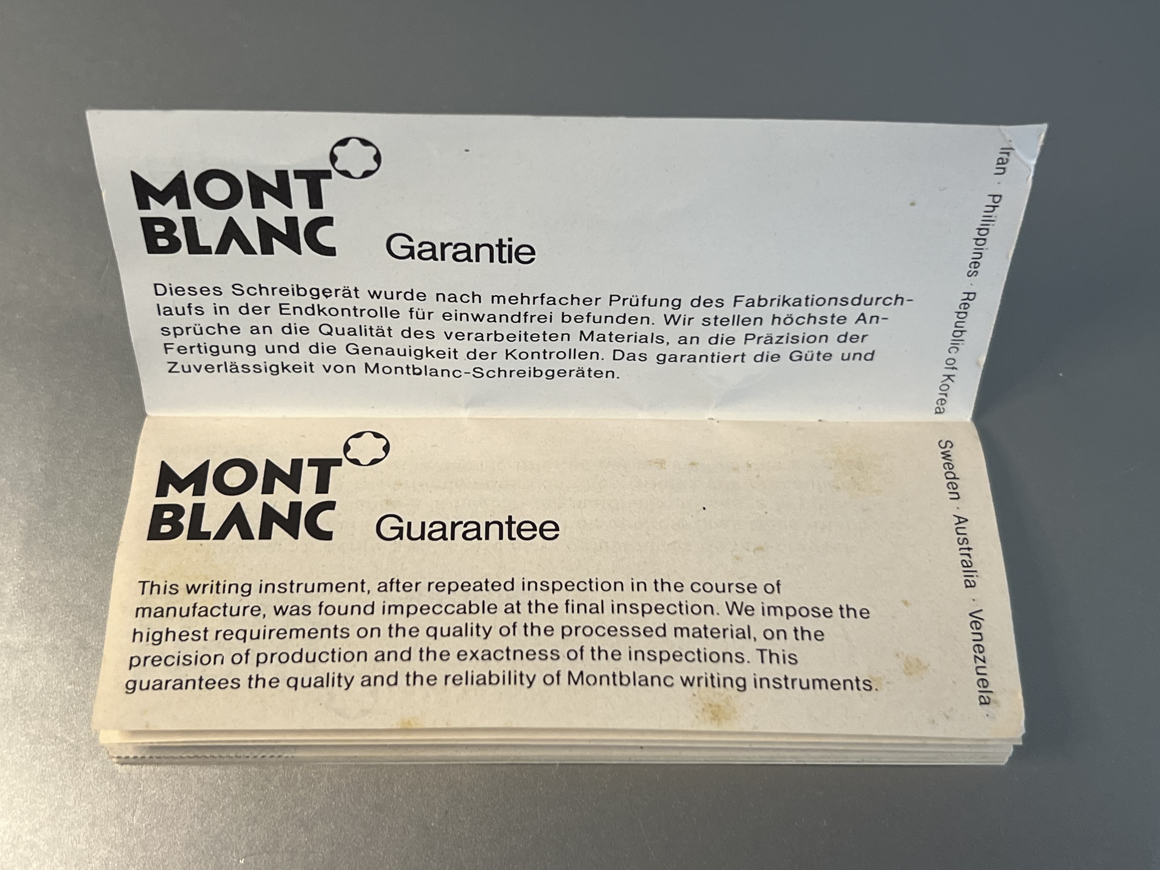 “This writing instrument, after repeated inspection in the course of manufacture, was found impeccable at the final inspection… This guarantees the quality and the reliability of Montblanc writing instruments.”